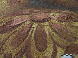 Die Fresken wurden ebenfalls gereinigt, fragile Malschicht gesichert, Putzhohlstellen hinterfüllt und -ausbrüche gekittet. Die Kittungen wurden anschließend farblich in die Umgebung integriert.